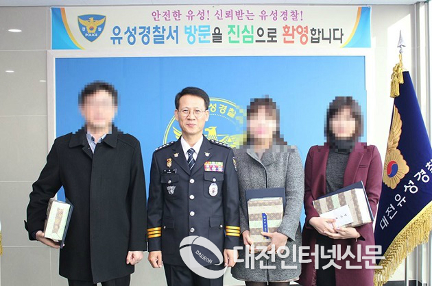 이에 유성경찰서는 2016. 11. 11. 경찰서 3층 중앙홀에서 피의자 검거에 기여한 신고자 A씨 등 3명에 대해 감사장을 수여하고 신고보상금을 전달하였다.