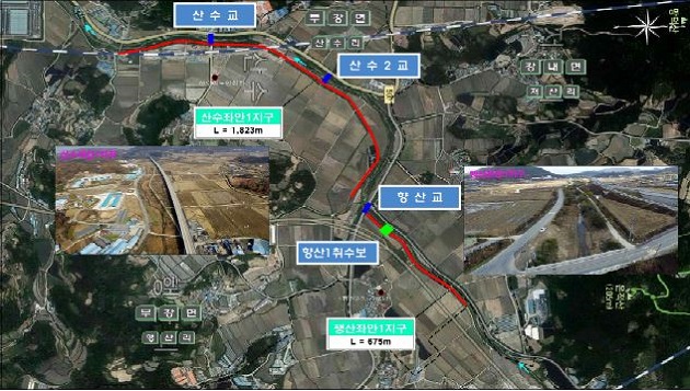 또한 국민안전처가 국비 50%를 지원하는 재해위험 지구 정비사업은 총사업비 44.012,000,000원이 투입되어 곡교지구(7,740백만원), 백천지구(18,986백만원), 산수지구(17.286백만원)에 대하여 19년까지 정비를 마칠 예정이다.