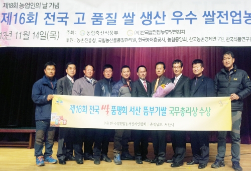 서산시는 지역 대표 쌀 브랜드인`뜸부기와 함께 자란 쌀(이하 뜸부기쌀)´이 제16회 전국 쌀 대축제에서 국무총리상을 수상했다고 밝혔다.