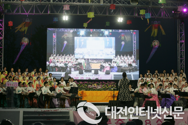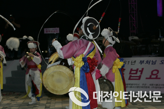 특히 이날 봉축법요식에서는 잊혀져가는 우리 전통문화를 계승하기 위해 고려시대의 등인 칠보등롱을 혼자의 노력으로 재현한 원행스님(부강면 광제사)의 칠보등롱이 무대를 장식하였고 옛날부터 액운을 몰애낸다는 낙화가 재현 도이었다.