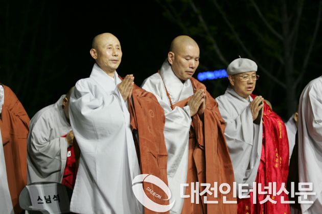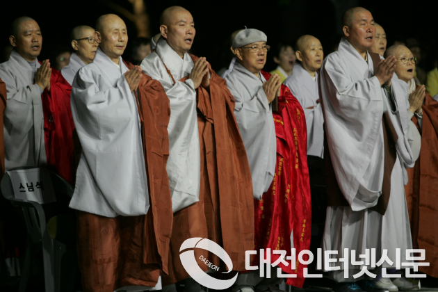 이날 환성스님(세종시사암연합회장, 영평사 주지)은 봉행사를 통해 매년 올리는 봉축의 연등에 효도의 등, 자비의 등, 봉사의 등, 사랑의 등, 보은의 등, 헤원의 등, 화합의 등, 소원의 등 이런 저런 각자의 소원과 발원을 담아 올렸으나 가장 으뜸공양은 오늘 이 광장(호수공원)의 어둠을 몰아내는 연등처럼 자신의 마음속 깊이 자리한 탐욕과 분노와 무지의 어둠을 몰아낼 부처님의 지혜의 등불을 각자의 지혜의 등불에 옮겨 붙여 이 땅의 모든 이웃에게 정의 등, 진실의 등, 헤원의 등, 화합의 등을 밝혀 이 땅에 불국정토를 구현하자고 봉행사를 대신하였다.