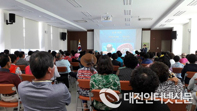 이번 강좌는 단일질환 사망원인 1위인 심뇌혈관질환의 올바른 정보제공과 예방관리를 위한 것으로 이날 기초검진, 원진호 내과 원장을 초청해 고혈압 및 당뇨병 등 합병증 예방관리 특강, 미소․친절․청결 교육, 힐링 노래교실 순으로 진행했다.