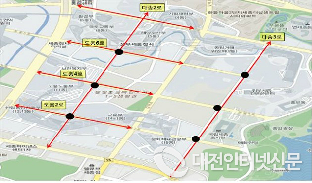 행정중심복합도시건설청(청장 이원재, 이하 행복청)과 세종특별자치시(시장 이춘희)는 행정중심복합도시(이하 행복도시) 내 교통흐름 개선을 위해 정부세종청사 인근 다솜2로․다솜3로와 소담동 남세종로 등 9개 교차로에 비보호 좌회전 신호를 운영할 계획이라고 16일(목) 밝혔다.