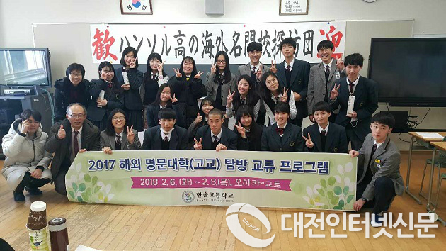 한솔고등학교(교장 유인식, 이하 한솔고)는 지난 2월 6일부터 8일까지 2박 3일 일정으로 일본 오사카와 교토지역으로 「해외 명문학교 탐방 프로그램」을 진행했다고 밝혔다.