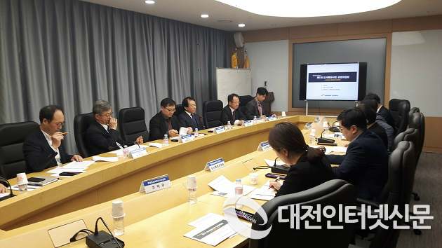 ▲ 특화운영위원회 김진숙 행복청 차장(위원장) 및 김대익 위원(한경대 교수) 등이 회의를 하고 있다(행복청제공)