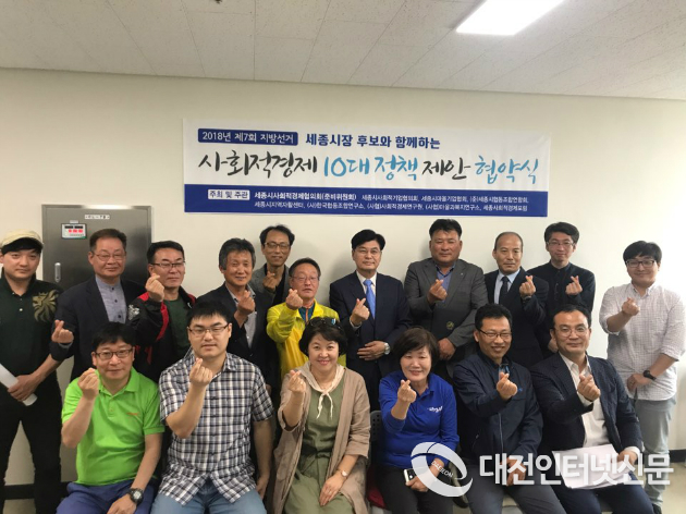 지난 5월, 세종시사회적경제협의회(준)은 3개월간의 준비를 통해 세종사회적경제 10대 공약안을 마련하고, 시장후보에게는 협약식을 시의원 후보들에게는 의견제출을 요구하여 그 결과 더불어민주당 이춘희 시장후보와 5월 21일 14시 협약식을 진행하였으며, 바른미래당 허철회 시장후보는 5월 23일 11시 협약식을 진행했다.