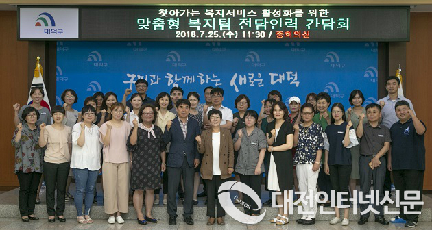 대전 대덕구(구청장 박정현)가 지난 25일 `구민과 함께하는 새로운 대덕´이라는 구정 구호에 걸맞은 찾아가는 복지서비스 구상을 위해 맞춤형복지팀 간담회를 개최했다.