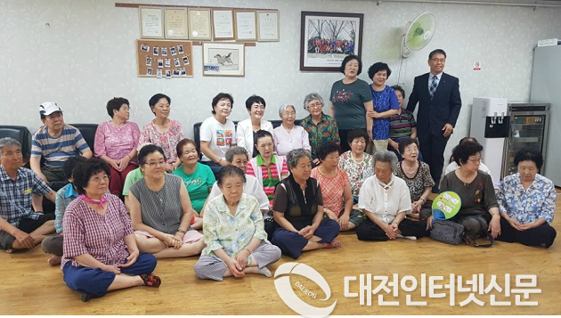 ▲ 30일 중리사회복지관에서 박정현 대덕구청장이 무더위쉼터를 방문한 어르신과 함께한 모습 (사진-대덕구청제공)