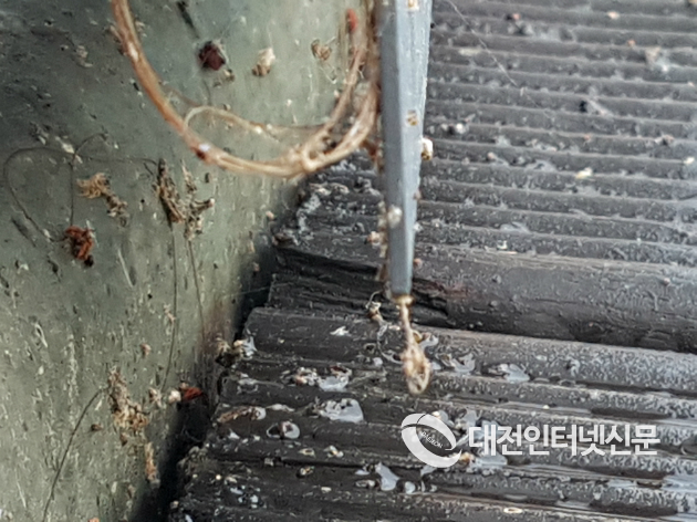 특히 시민들리 왕래하는 주요통로에는 청소가 되지 않은 체 거미줄과 조류의 변들이 그대로 방치되어 이곳을 지나는 시민들의 눈살을 찌푸리게 하였고 도출된 위험요소는 시민의 안전을 특히 어린이들의 안전을 위협한 체 안전을 위협하고 있는 실정이다.