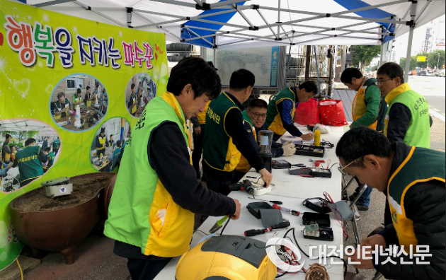 대전 중구(구청장 박용갑)는 23일 석교동 주민센터 앞에서 전기전자제품 수리봉사팀 회원 20여 명이 참여해 전기전자제품 무료수리 봉사활동을 실시했다고 밝혔다.