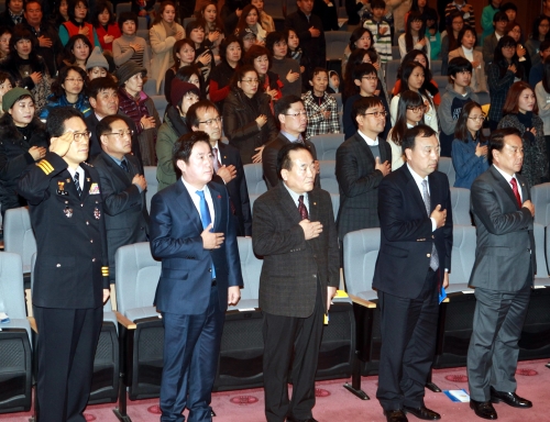 정찬민 용인시장은 16일 오후 2시 시청 에이스홀에서 용인시민 중 여성(일명 `줌마´)을 위해 열린 `통일맞이 줌마 평화콘서트´에 참석, 관계자들을 격려했다.