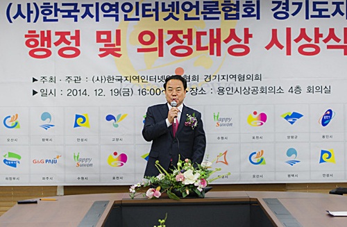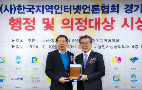용인상공회의소에서 (사)한국지역인터넷언론협회 경기도지역협의회가 주최한 `제2회 한국지역인터넷언론협회 경기도지역협의회 행정 및 의정대상`에서 용인시의회 신현수 의장과 이건영 의원이 의정대상을 각각 수상 하였다.