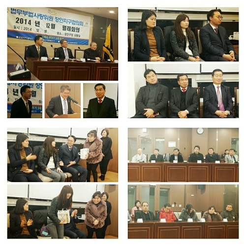 수원지방검찰청 김국일 부장검사, 담당검사 인훈, 민수영 김준식 안전주민자치과장, 법사랑 수원지역협의회 회장 양수창, 실장 박항영, 및 법사랑 위원들은 한해의 활동을 돌아보고 내년도 계획을 토론하며 뜻 깊은 시간을 가졌다