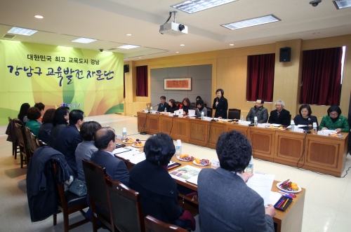 지난해 12월 30일`강남구 교육발전 자문단´을 위촉하고 지난달 22일 제1차 회의를 열어 영·유아, 초등학교, 중학교, 고등학교 등 4개의 분과위원회를 구성해 인성교육 진흥 방안과 자유학기제 시행에 따른 지원 대책, 지역 내 특목고와 국제중 유치 등 강남구 교육현안과 교육발전 방향을 모색했다.