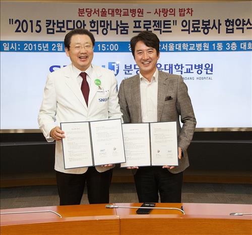 지난달 27일 맺은 이 협약을 통해 사랑의 밥차는 캄보디아 정부의 협조사항 및 현지 환자에 대한 진료 편의 등을 제공하고, 분당서울대병원은 의료봉사 활동에 필요한 약품 및 의료인력 등을 지원한다.