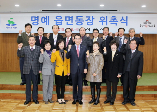 ▲ 서산시는 시민과의 소통을 위해 `찾아가는 시민과 대화´, `똑똑 시장실´, `명예 읍면동장제´ 등 다양한 시책을 추진하기로 했다고 밝혔다. 사진은 지난 5일 1일 명예 읍면동장 위촉식 모습