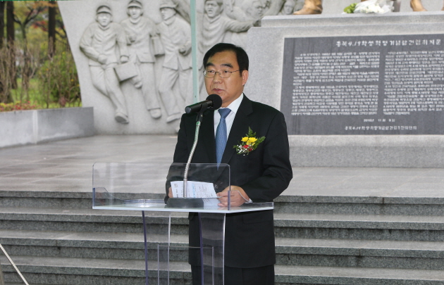 제55주년 4.19혁명 기념식이 19일(일) 충청북도와 충북4.19혁명기념사업회 주관으로 상당공원 4.19학생기념탑 앞에서 개최 되었다.