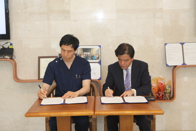 김성일 대표원장과 최석우 대표회장이 의료협약서에 서명하고 협약이 이루어졌음을 공포했다.