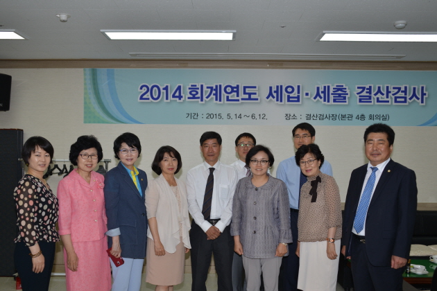 강남구의회(의장 김명옥) 의상단은 지난 2일 오후에 강남구청 본관4층에서 실시되고 있는 2014회계연도 세입·세출 결산 검사장을 방문해 위원들을 격려했다.