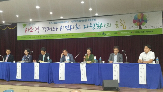 수원시종합자원봉사센터는 지난 10일 영통구청에서 `사회적 경제와 시민사회 자원봉사의 융합´이라는 주제로 자원봉사 정책 포럼을 개최했다.