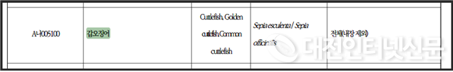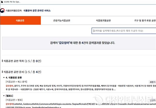 원재료 검사 식약처 원재료 검색 갑오징어 내장 뼈 불가 식품 에이 코드