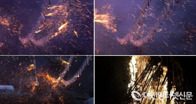 세종시 부강면 등곡리에서 정월 열 나흗날 밤에 액막이(액운은 태우고 복은 불러오는 의미) 행사로 200년 이상 마을에 구전으로 전해 내려오는 등곡리 낙화놀이 현장. [사진-대전인터넷신문]