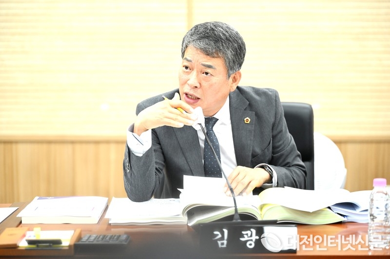 김광운 의원은 전의면 금사리 양계장에서 발생하는 악취 민원에 대해 주기적인 점검의 필요성을 제기하며, 도로 보수에 사용 중인 포대 아스콘의 내구성과 강도에 대한 우려를 표했다. [사진-세종시의회]