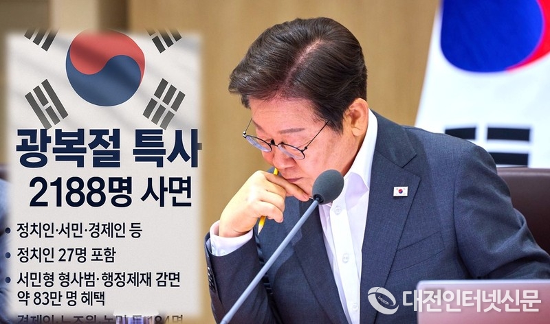 [대전인터넷신문=세종/최대열기자] 2025년 광복절 특별사면이 조국 전 조국혁신당 대표와 정경심 전 교수 등 정치인을 포함한 2,188명을 대상으로 단행되면서, 사회 통합과 공정성 논란이 동시에 불거졌다. 여권 내부와 야권, 시민사회 전반에서 찬반 의견이 팽팽하게 맞서고 있다.