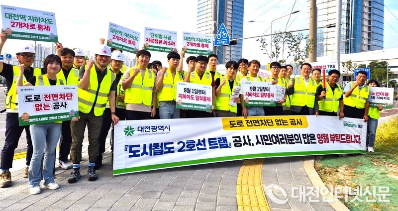 [대전인터넷신문=대전/이향순 기자] 대전시는 9월부터 도시철도 2호선 트램 지하화 구간 공사 착공에 따른 교통통제를 앞두고, 시민 불편을 최소화하기 위해 27일 대시민 홍보 캠페인을 실시하며 적극적인 협조를 당부했다.