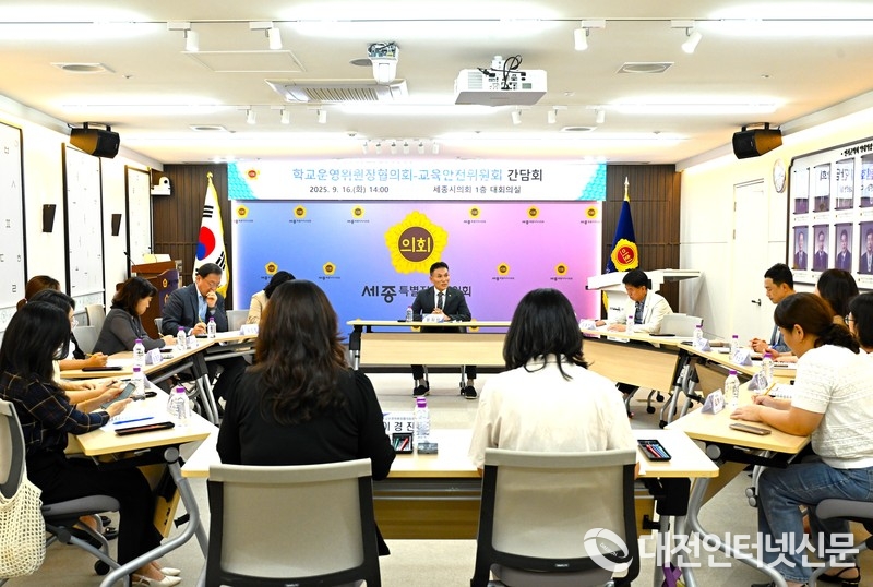 [대전인터넷신문=세종/권혁선 기자] 세종시의회 교육안전위원회는 지난 16일 세종시 학교운영위원장협의회와 간담회를 열고, 현장체험 활성화, 안전한 통학로 조성 등 학교 현장의 주요 현안을 논의했다.