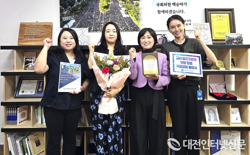백승아 의원은 세종교사노조의 제안과 현장의 의견을 경청하며 “교사들이 교육 본연의 업무에 온전히 집중할 수 있도록 교권 보호를 강화하고, 학생 맞춤형 지원 정책이 학교 현장에서 실효성 있게 작동하도록 최선을 다하겠다”고 강조했다.