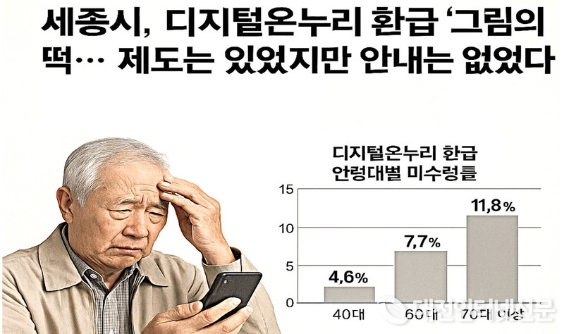 특히, 세종은 인구 비중(0.7%) 대비 환급률(2.7%)이 높아 비수도권 가운데 가장 적극적인 이용 특성을 보였지만, 장 의원이 제출받은 자료에 따르면 70대 이상 미수령률이 11.8%에 달해, 디지털 접근성이 낮은 고령층이 환급 절차를 끝내 완료하지 못한 사례가 적지 않았던 것으로 분석됐다. 즉, 세종 시민들은 상품권을 사용하는 데는 적극적이었지만, 복잡한 앱 기반 환급 절차 때문에 실제 혜택을 온전히 받지 못한 경우가 많았다는 의미다.
