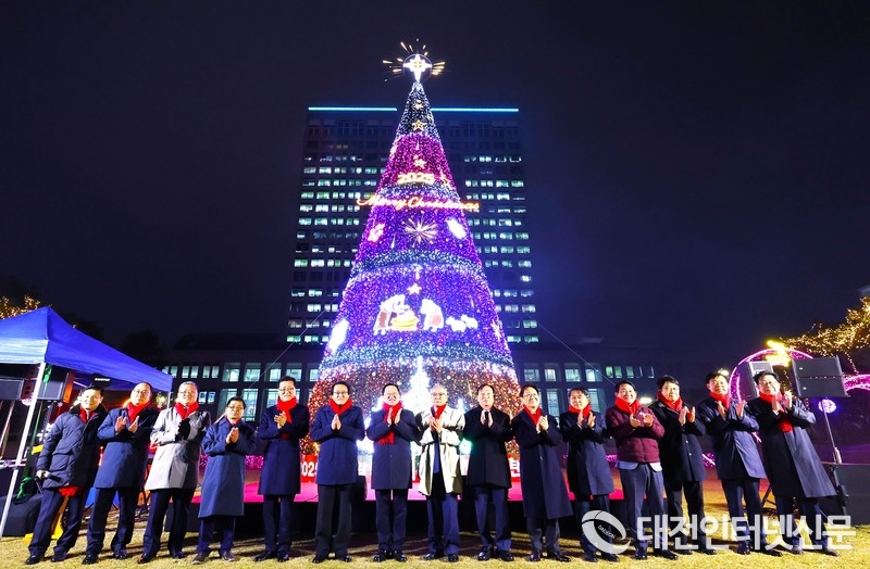 [대전인터넷신문=대전/이향순 기자] 대전시는 25일 시청 남문광장에서 시민 150여 명이 참석한 가운데 성탄트리 점등식을 열고 연말연시 도심에 사랑과 희망의 메시지를 전하는 대형 트리를 내년 1월 17일까지 운영한다고 밝혔다.