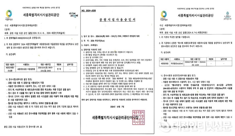 공단이 실제 발급한 각종 승인 문서에 ‘대관 승인’과 행사 조건 부과, 사용제한 등 승인권 행사가 명확히 기재돼있다.