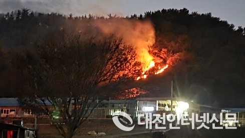 [대전인터넷신문=충남/최요셉 기자] 산림청 중앙산불방지대책본부는 2일 오후 충남 청양군 정산면 해남리 민가 인근에서 발생한 산불을 산불진화차량 24대와 인력 70명을 긴급 투입해 46분 만에 주불 진화를 완료했다고 밝혔다.
