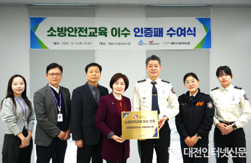 남부소방서는 이날 세종시사회서비스원에 인증패를 전달하고, 오는 8일 농림수산식품교육문화정보원에도 인증패를 수여할 예정이다. 인증패는 소방안전교육 참여도와 기관의 자체 안전관리 체계를 종합적으로 검증한 뒤 부여되는 것으로, 관내 기관의 안전문화 성숙도를 높이는 데 중요한 역할을 하고 있다.