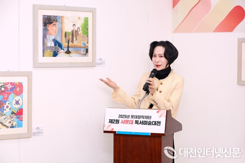 [대전인터넷신문=종합/권혁선 기자] 롯데장학재단은 지난 4일 서울 인사동 한국미술관에서 제2회 샤롯데 독서미술대전 시상식을 열고 고헌중학교 1학년 김현서 학생에게 대상인 샤롯데상을 수여했으며, 수상작 50점은 8일까지 무료 전시된다.