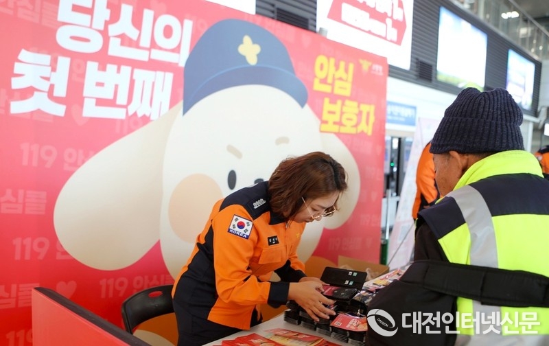 [대전인터넷신문=대전/이향순 기자] 소방청과 대전소방본부는 12일 대전역에서 고령자·1인 가구 등을 대상으로 위급상황 시 신속한 구조를 돕는 ‘119안심콜’ 이용을 안내하며 현장 가입 지원 캠페인을 실시했다.