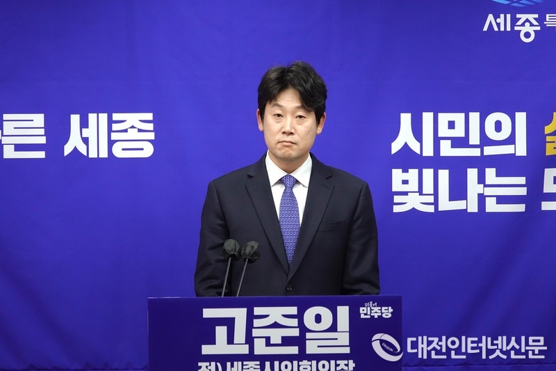 19일 오전 10시 세종시청 브리핑실에서 2026년 지방선거 세종시장 공식 출마를 선언하는 고준일 전 세종시의회 의장. [사진-대전인터넷신문]고준일 전 의장은 “우리 세종특별자치시의 멈춰선 심장을 다시 뛰게 하고, 시민 여러분과 함께 새로운 미래의 지평을 열기 위해 이 자리에 섰다”며 “저 고준일, 6월 지방선거에 세종특별자치시장 출마를 엄숙히 선언한다”고 밝혔다. 그는 출마 선언의 슬로건으로 “내일이 다른 세종, 시민의 삶이 빛나는 도시”를 제시했다.