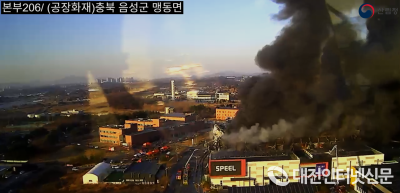 30일 오후 2시 56분 충북 음성군 맹동면의 한 생활용품 제조 공장에서 원인 미상의 화재가 발생했다. [사진-산림청]