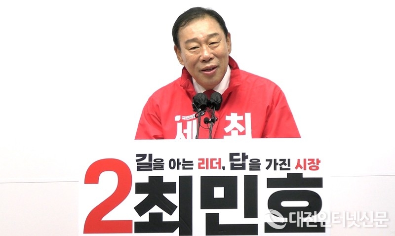 최민호 국민의힘 세종시장 후보는 21일 세종시청에서 기자회견을 열고 세종종주 131km 완주 경험을 바탕으로 행정수도 완성을 위한 범정치권·범시민 협의체를 이달 말까지 구성하자고 촉구하며 입법과 개헌 논의 병행 추진 필요성을 강조했다. [사진-대전인터넷신문]