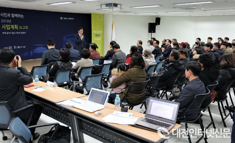 [대전인터넷신문=세종/최대열기자] 시민과 봉사단체(교통공사 서비스평가단, 버스타고 평가단) 회원들100여명이 참석한 새로운 형태의 업무보고가 세종도시교통공사 회의실에서 31일 오후 개최되었다.