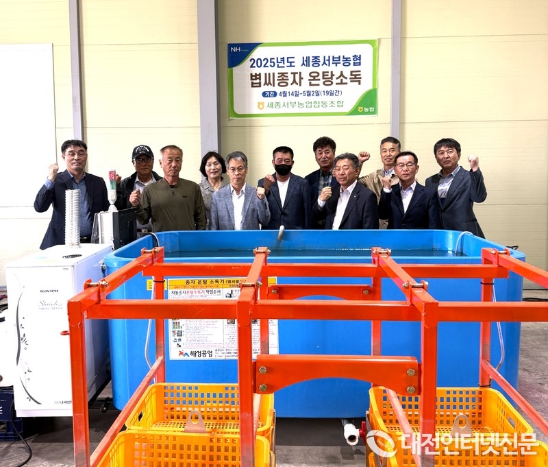 [대전인터넷신문=세종/권혁선 기자] 세종서부농협(조합장 이충열)은 본격적인 영농철을 맞아 고품질 벼 생산을 위해 지난 4월 14일 ~ 5월 2일까지 세종서부농협 본점 주차장에 볍씨온탕소독기를 설치해 조합원에게 무상으로 볍씨 온탕소독을 운영했다.