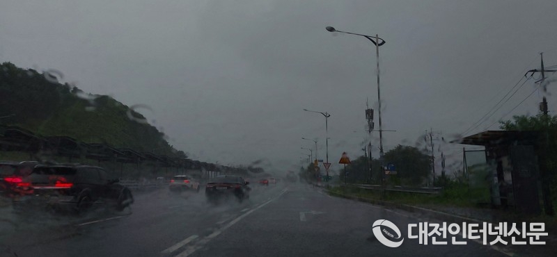 17일 아침 출근길, 세종시 금남면 지역에 많은 비로 차량 운전자들이 어려움을 겪고 있다. [사진-대전인터넷신문]