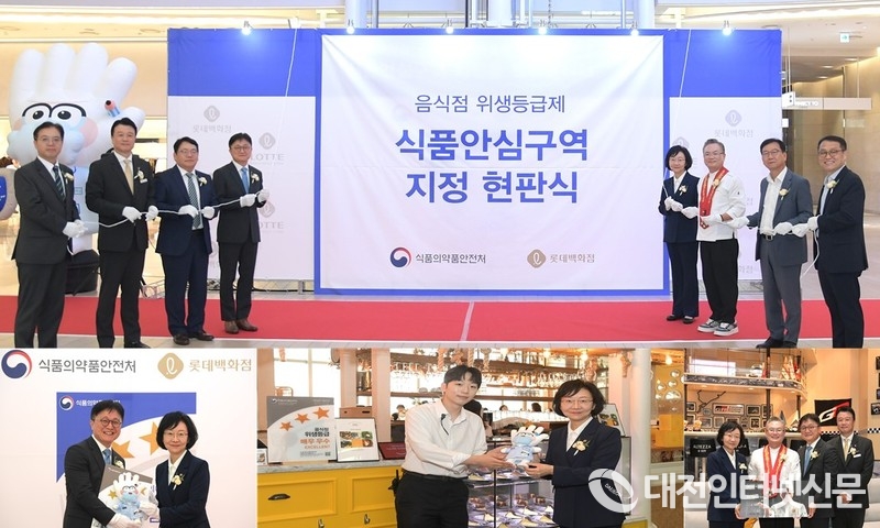 [대전인터넷신문=세종/최대열기자] 식품의약품안전처(처장 오유경)는 9월 4일 서울 송파구 롯데백화점 월드몰점에서 롯데백화점과 롯데프리미엄아울렛 등 41곳을 ‘식품안심구역’으로 지정하고, 시설 내 음식점에 위생등급을 부여하는 기념행사를 개최했다.
