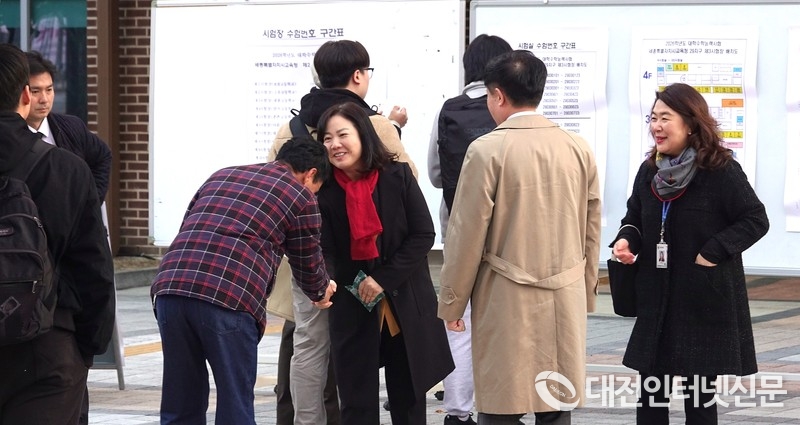 구연희 세종시교육감 권한대행이 수험생들을 격려하고 있다. [사진-대전인터넷신문]