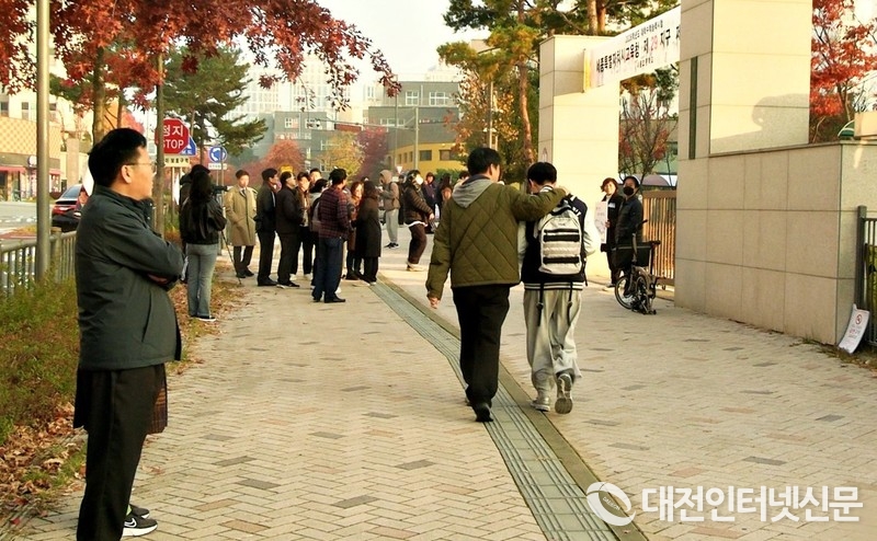 13일, 구연희 교육감 권한대행이 2026학년도 대학수학능력시험 제29(세종)지구 제3시험장인 새롬고등학교를 찾아 수험생들에게 따뜻한 격려와 응원을 전하는 모습. [사진-대전인터넷신문]