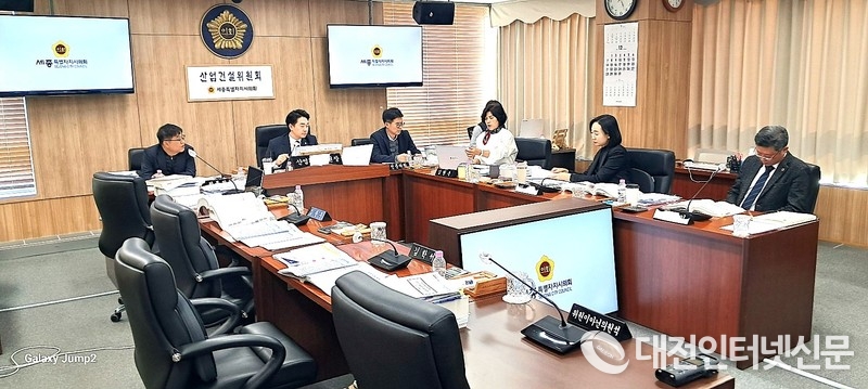 국민의힘 소속 의원들이 집회 참석을 이유로 정회한 산업건설위원회에서 민주당 소속 의원들이..... [사진-대전인터넷신문]