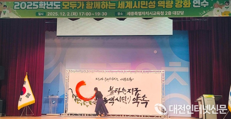 [대전인터넷신문=세종/권혁선 기자] 세종시교육청은 2일 세종시교육청 대강당에서 시민·학부모·교직원을 대상으로 ‘기후 위기 시대 녹색 세계 시민의 자세’를 주제로 한 연수를 열고, 기후 위기를 인권·세계시민교육 관점에서 성찰하는 시간을 마련했다.