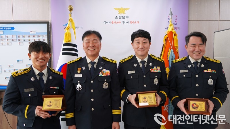[대전인터넷신문=세종/권혁선 기자] 세종소방본부가 18일 본부장 집무실에서 ‘제2회 구급대원 최고 영예상’ 시상식을 열고 현장 대응과 정책·미래 인재 분야에서 시민의 생명을 지킨 우수 구급대원 3명을 선정해 포상했다.